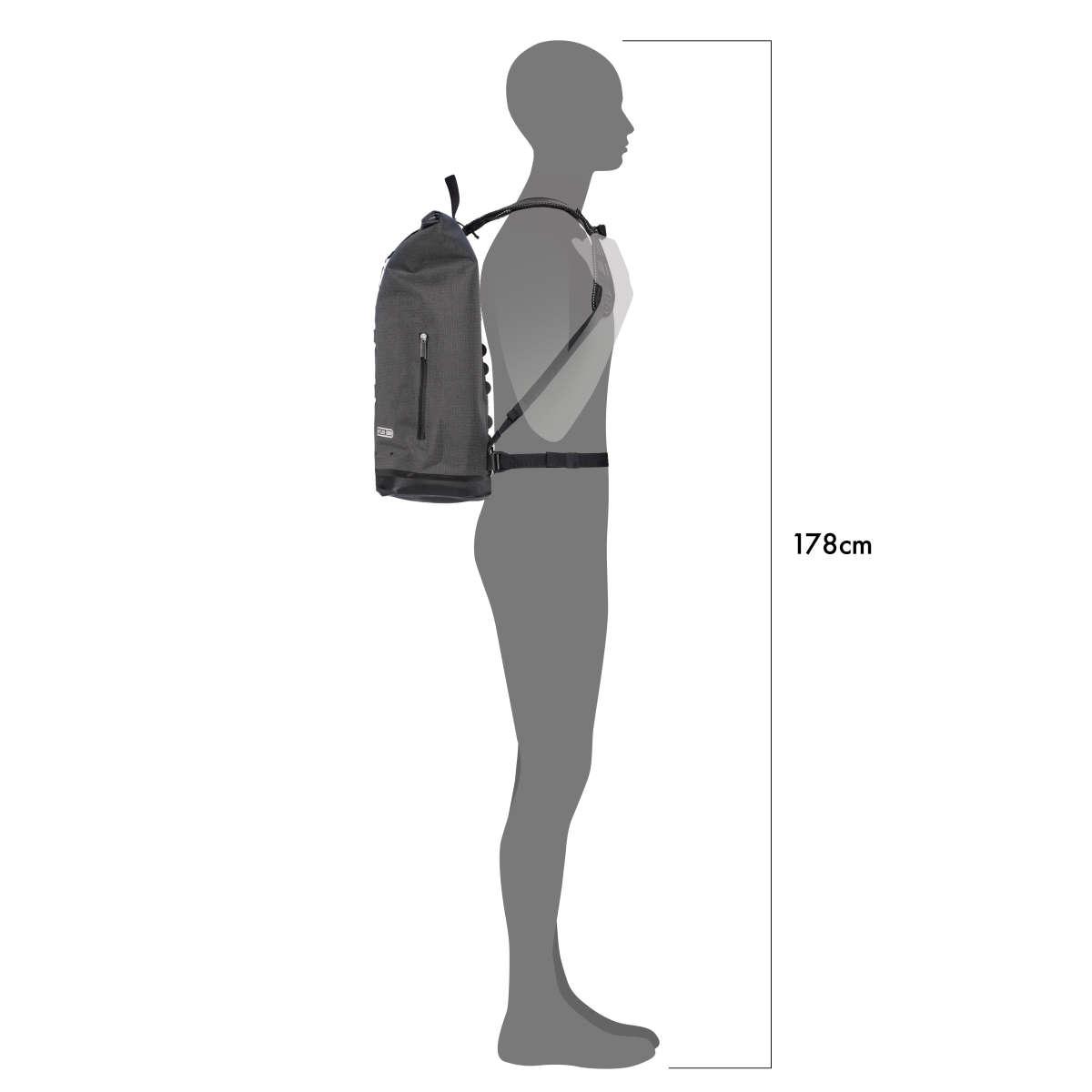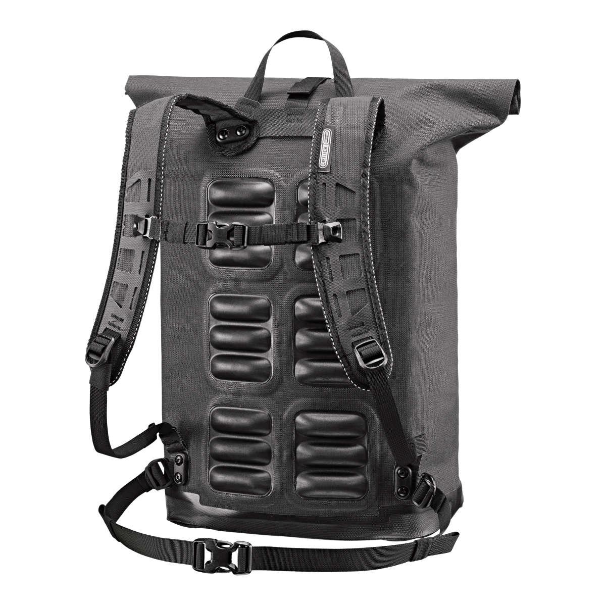 Daypack aus PU-beschichtetem Cordura-Mischgewebe mit angenehmer Haptik; in 2 Größen erhältlich; Rollverschluss mit Schnellzugriff; ergonomische Schulterträger und eingeschweißte TPU-Rückenpolster mit Ventilationskanälen; Fronttasche (nicht wasserdicht); Organizer mit Innentaschen; gepolstertes Fach für Notebook/Tablet; Schlaufe für optionales Rücklicht; Halter für Bügelschloss, Tragegriff; abnehmbarer Brustgurt und Hüftgurt; Reflexlogo.