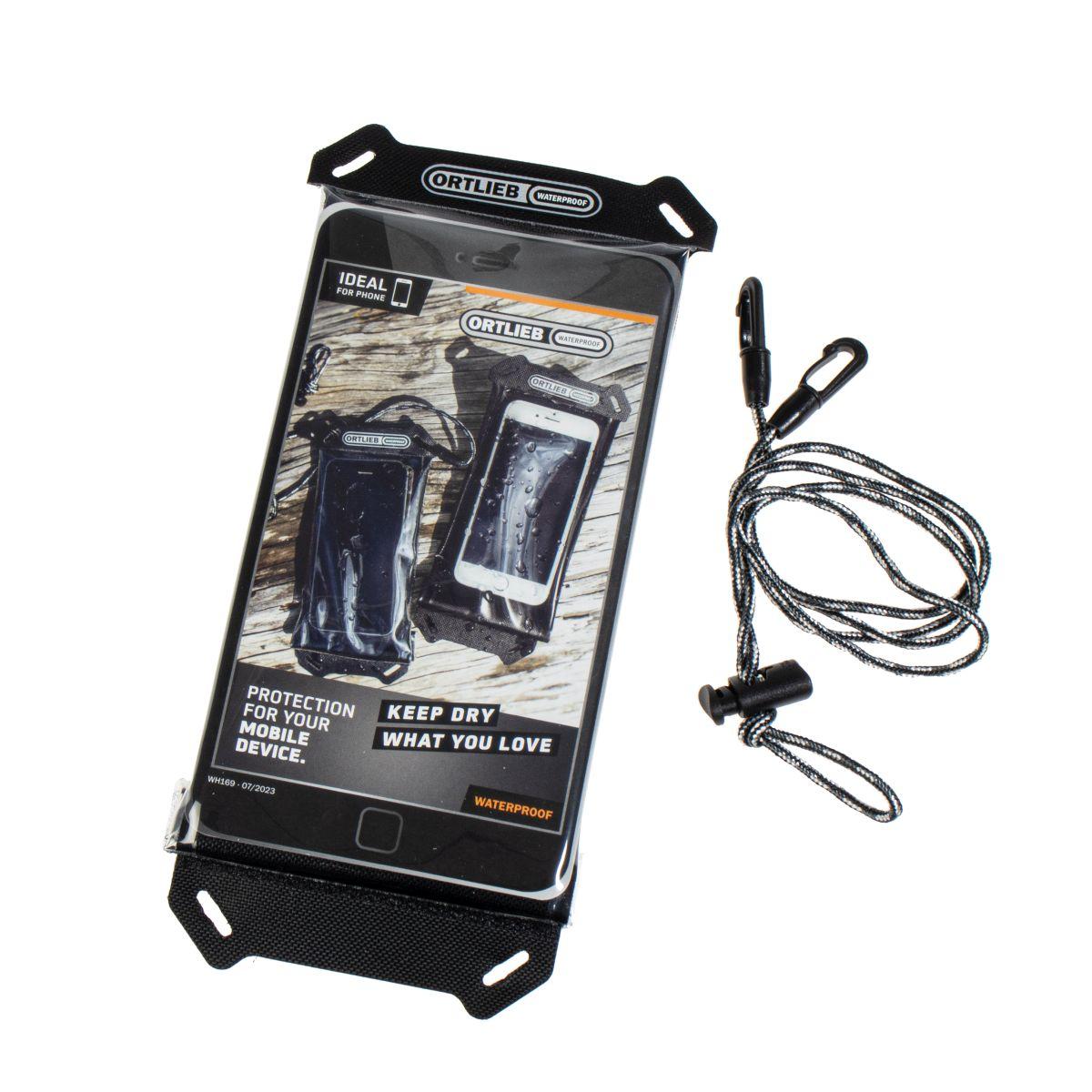 Wasser- und staubdichte Schutzhülle für Smartphone, GPS oder E-Reader in zwei Größen; Bedienung des Geräts durch Folie möglich; transparentes Fenster auf Rückseite für Kamera; seitliche Tasten am Gerät bedienbar; Umhängekordel; mit dem Safe-it Mounting-Set auf Ultimate Six Lenkertaschen montierbar (F1420 separat erhältlich); Gürtelschlaufe (bei Größe M). Alle Maße sind Innenmaße.