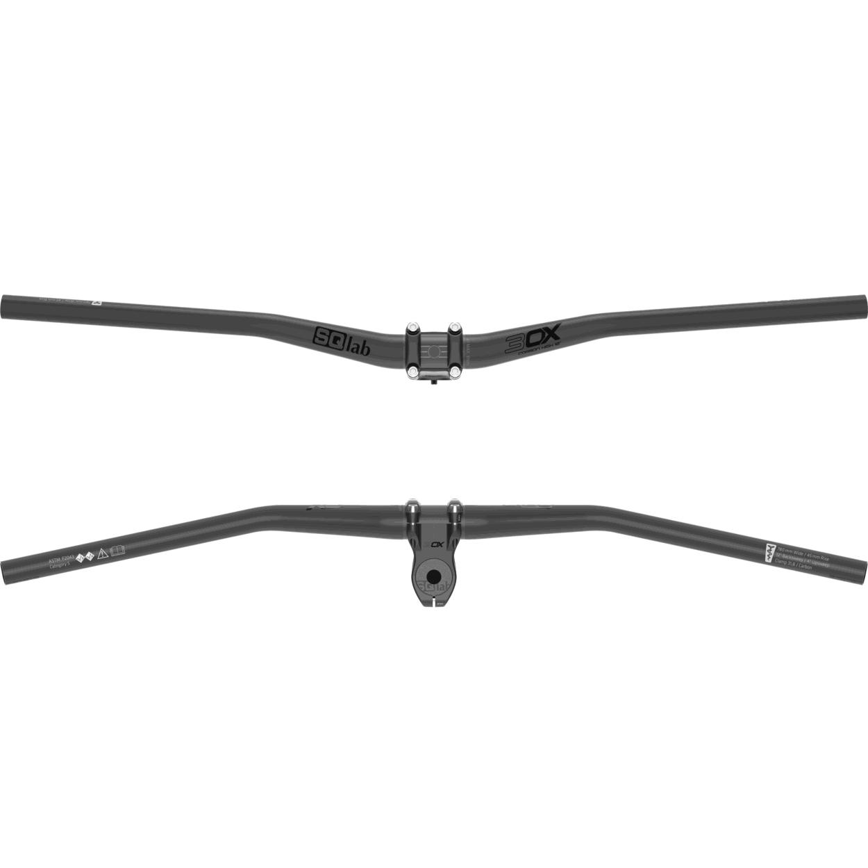 Der 12° Backsweep (Biegung nach hinten) sorgt bei kurzem Reach und eher aufrechter Sitzposition für einen geraden Übergang vom Unterarm zur Hand und schützt das Handgelenk vor den extremen Belastungen beim Downhill. Der 4° Upsweep (Biegung nach oben) bestimmt die Ellenbogenposition für eine aktive Fahrweise. Die 15mm, 30mm oder 45mm Rise (Lenkerhöhe) erlauben eine individuelle Abstimmung der Sitzposition.Klemmung 31,8 mmDen \"Zedler End of Life\" Test mit Bravour bestanden. Die perfekte Abstimmung von Form, Wandstärke und Durchmesser gemeinsam mit der komplexen, auf Fahrdynamik und Anatomie optimierten Biegung, machen den neuen SQlab 3OX Lenker zum aktuell stabilsten und gleichzeitig leichtesten Lenker seines Bereichs.Der Lenker wird ohne den abgebildeten Vorbau ausgeliefert.