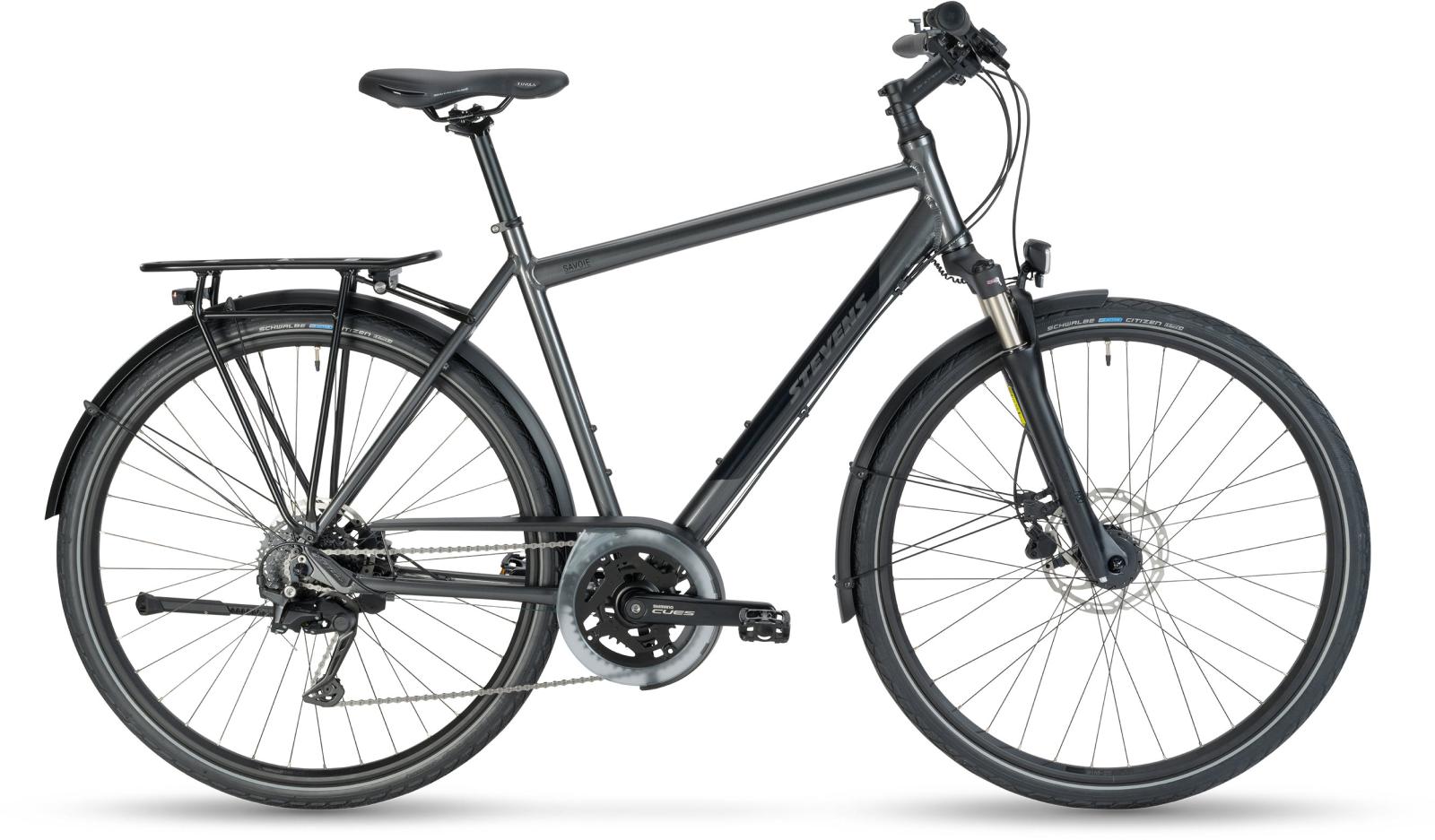 In Phantom Grey legt das Savoie einen edlen Auftritt aufs Parkett, das mal eine feine Sonntagstour aufs Land, mal die alltägliche Fahrt in die City sein kann. Und damit der Schein nicht trügt, findet der Kennerblick lauter funktionelle, zuverlässige Zutaten. Von den hydraulischen Tektro-Scheibenbremsen bis hin zur effizienten Shimano CUES U4000 2x9fach-Schaltung.
