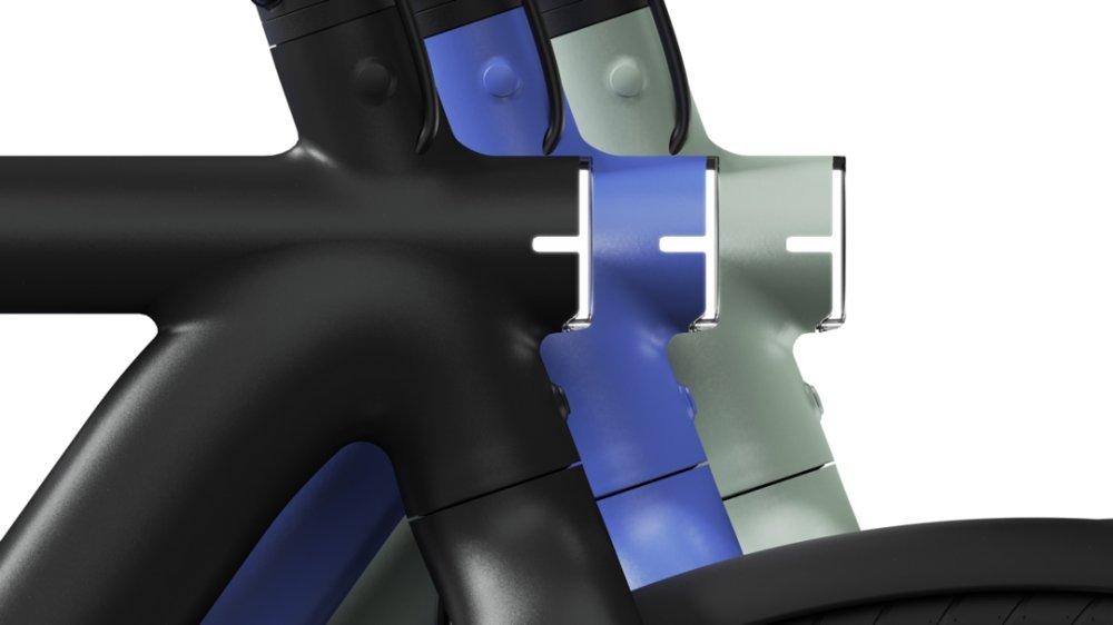 - Einstückiger, verstellbarer Lenker mit Vorbau